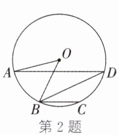 2. (2024·青岛)如图, $A$、$B$、$C$、$D$ 是 $\odot O$ 上的点, 半径 $OA = 3$, $\overgroup{AB} = \overgroup{CD}$, $\angle DBC = 25^{\circ}$, 连接 $AD$, 则扇形 $AOB$ 的面积为 (
