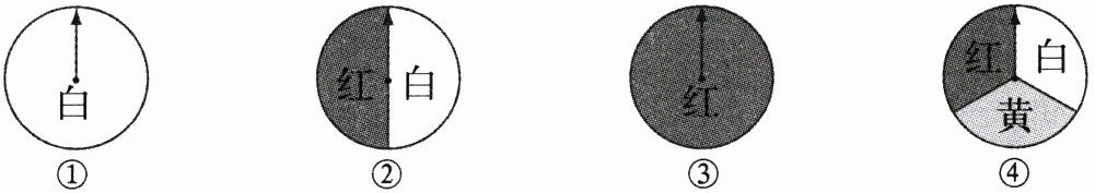 1. 转动下面的四个转盘,结果各会怎样?在横线上填“一定”“不可能”或“可能”。