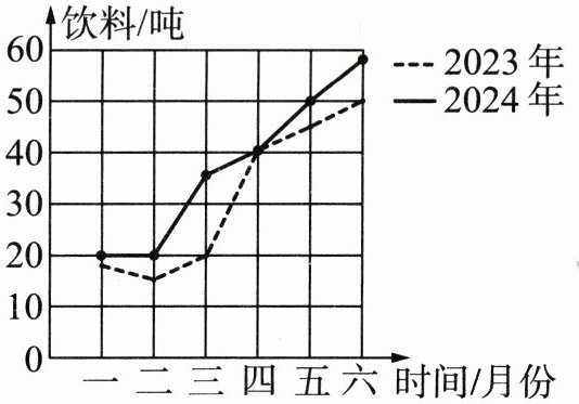 5. 下图是某食品厂2024年上半年和2023年上半年生产饮料的统计图。