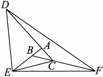 13. 如右图,线段 AB 的长度是 BE 的$\frac{1}{2}$,线段 BC 的长度是 CF 的$\frac{1}{3}$,线段 AC 的长度是 AD 的$\frac{1}{4}$。如果三角形 ABC 的面积是 12 平方厘米,那么三角形 AEC 的面积是