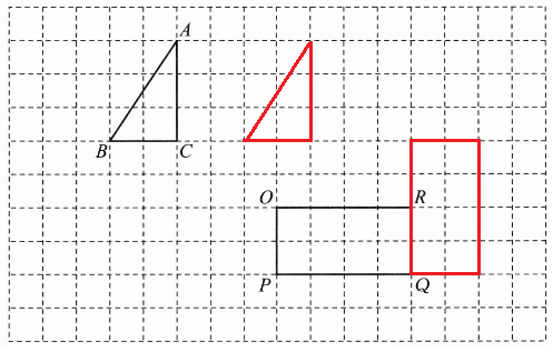 (1)把直角三角形 ABC 向右平移 4 格,画出平移后的图形。