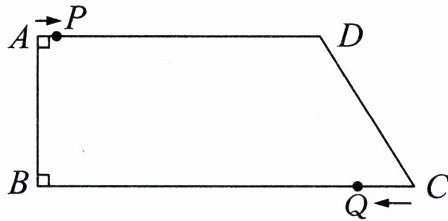 13. 如右图,在直角梯形ABCD中,线段AD= 15厘米,AB= 8厘米,BC= 20厘米。点P和点Q沿着边线同时开始移动,点P从点A出发以1厘米/秒的速度向右移动,点Q从点C出发以3厘米/秒的速度向左移动,当点Q到达点B时,两点停止移动。