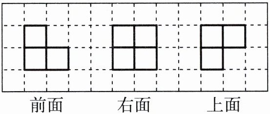 7. 小丽用棱长为1厘米的小正方体摆了一个物体,从前面、右面和上面观察这个物体,看到的图形如下图(图中每个小方格的边长为1厘米)。小丽摆这个物体用了(