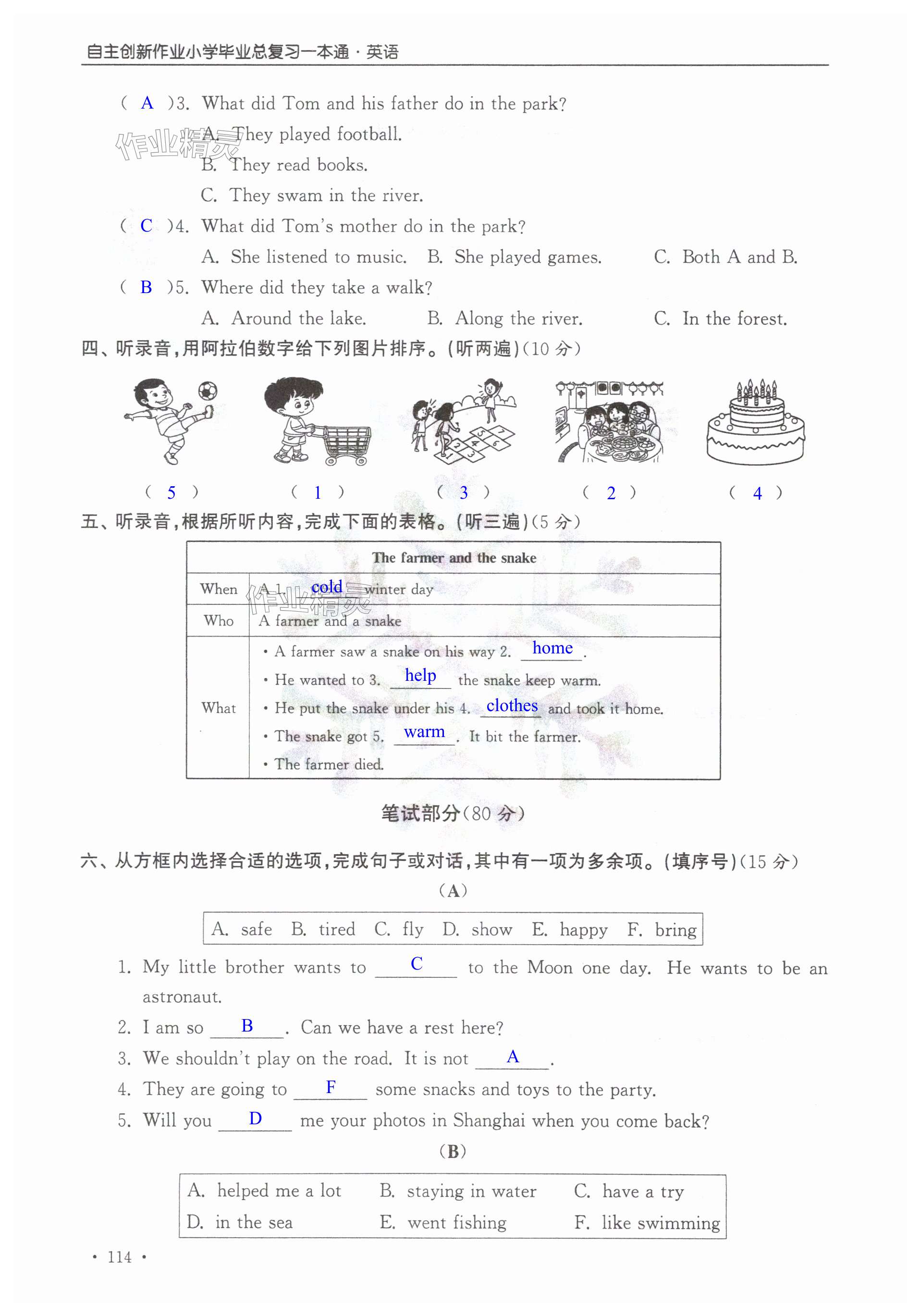 注:目前有些书本章节名称可能整理的还不是很完善,但都是按照顺序排列的,请同学们按照顺序仔细查找。练习册 2025年自主创新作业小学毕业总复习一本通英语淮安专版 答案主要是用来给同学们做完题方便对答案用的,请勿直接抄袭。