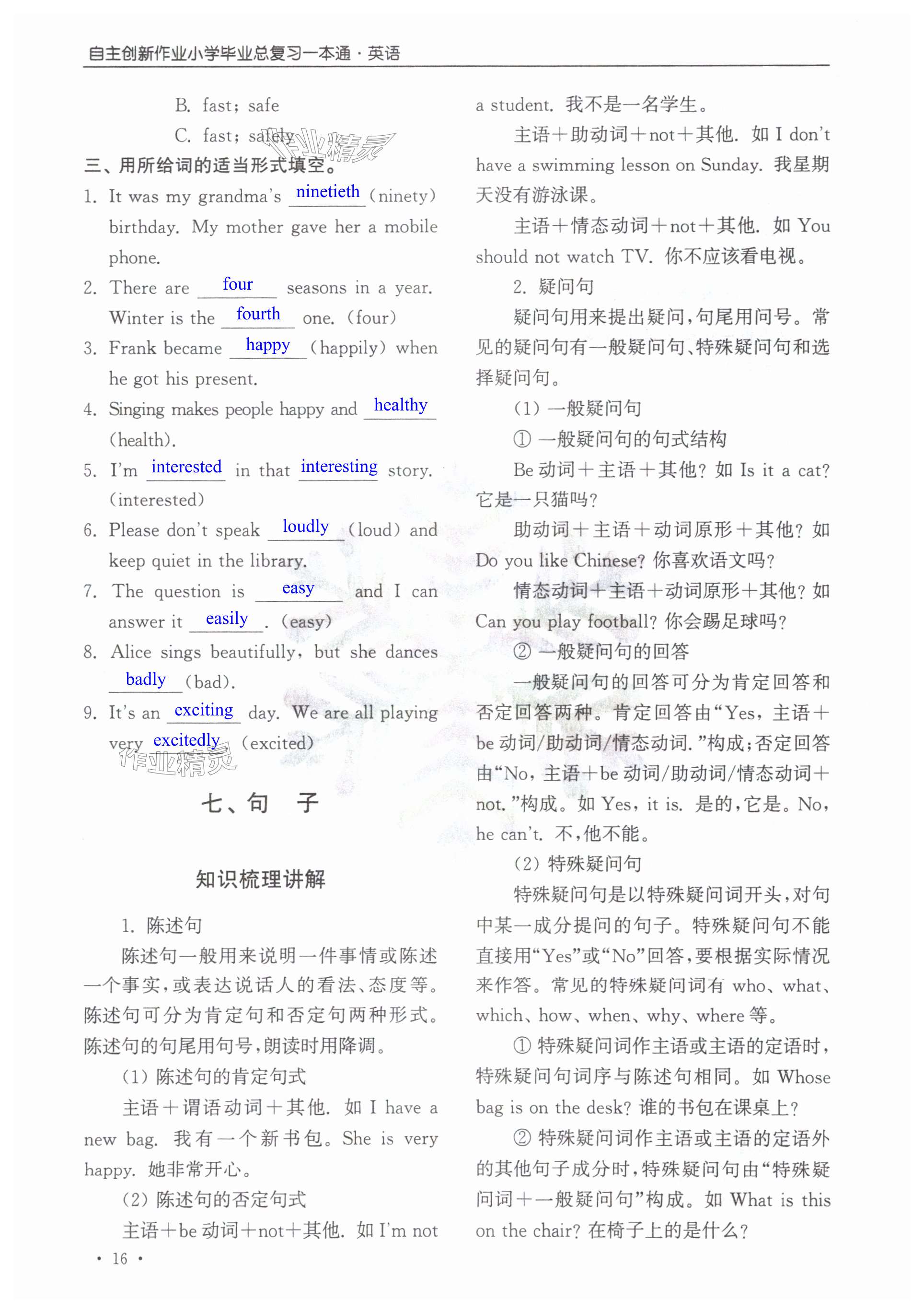 2025年自主创新作业小学毕业总复习一本通英语淮安专版