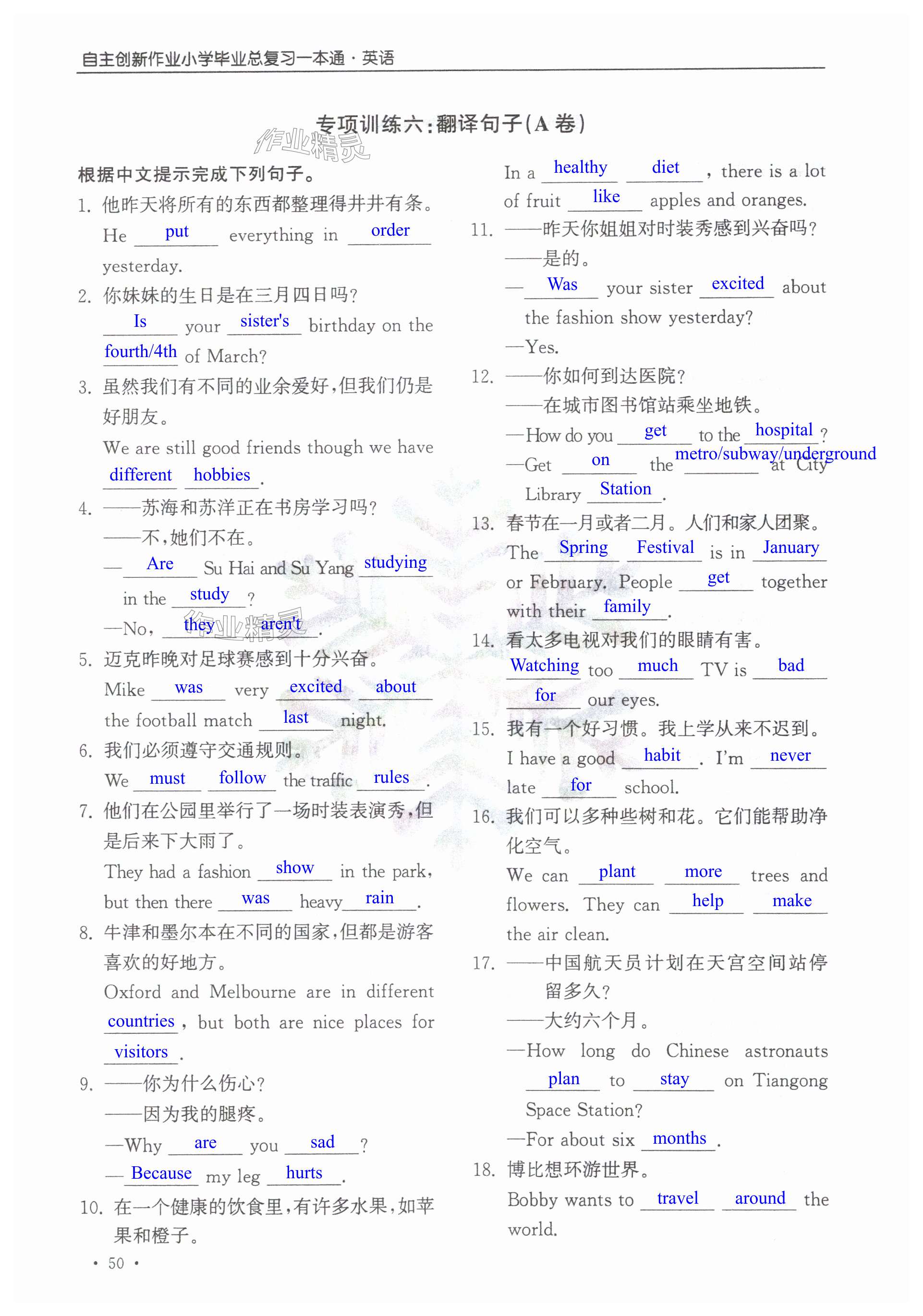 注:目前有些书本章节名称可能整理的还不是很完善,但都是按照顺序排列的,请同学们按照顺序仔细查找。练习册 2025年自主创新作业小学毕业总复习一本通英语淮安专版 答案主要是用来给同学们做完题方便对答案用的,请勿直接抄袭。