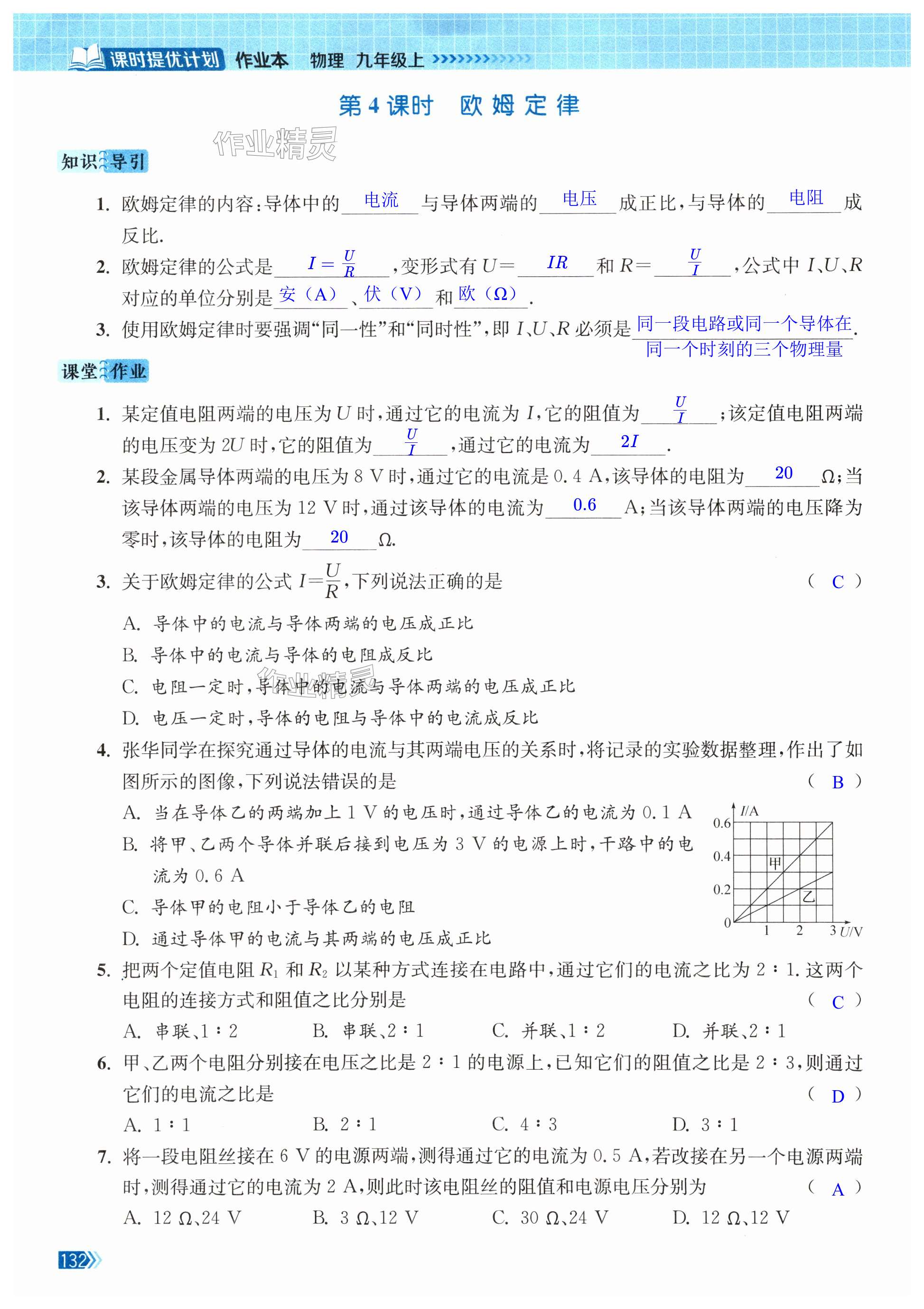 注:目前有些书本章节名称可能整理的还不是很完善,但都是按照顺序排列的,请同学们按照顺序仔细查找。练习册 2025年课时提优计划作业本九年级物理上册苏科版基础强化版 答案主要是用来给同学们做完题方便对答案用的,请勿直接抄袭。