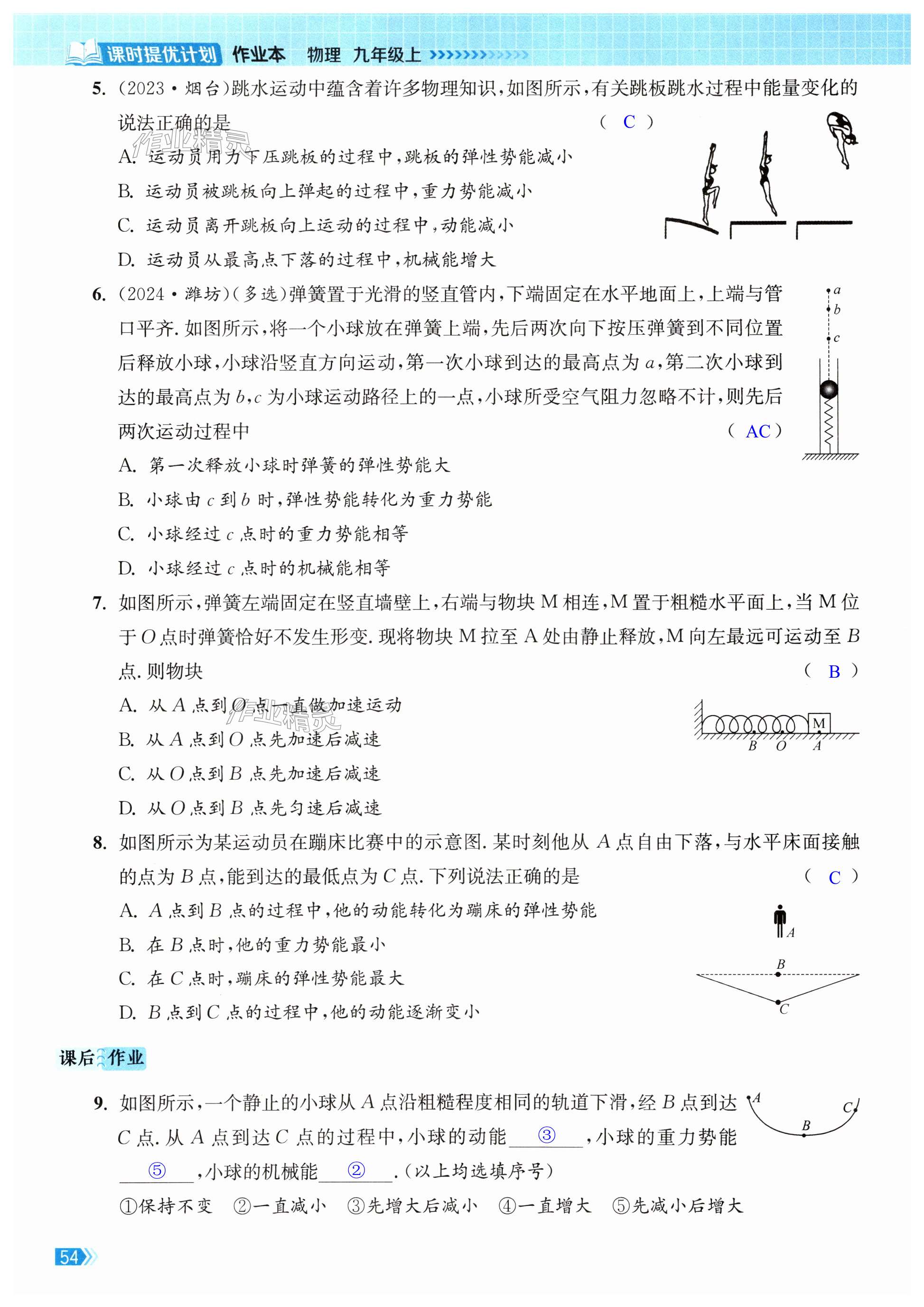 注:目前有些书本章节名称可能整理的还不是很完善,但都是按照顺序排列的,请同学们按照顺序仔细查找。练习册 2025年课时提优计划作业本九年级物理上册苏科版基础强化版 答案主要是用来给同学们做完题方便对答案用的,请勿直接抄袭。