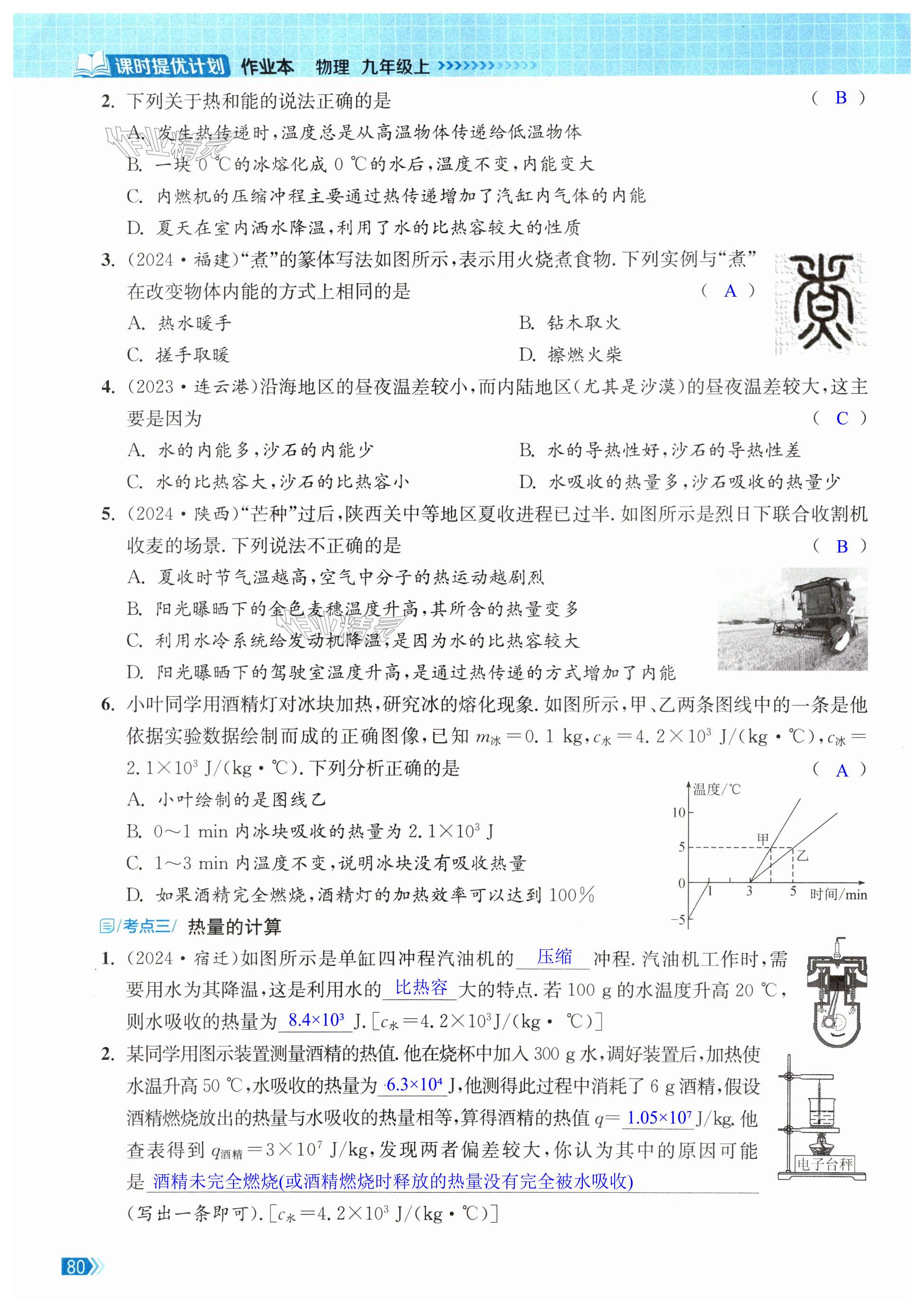 注:目前有些书本章节名称可能整理的还不是很完善,但都是按照顺序排列的,请同学们按照顺序仔细查找。练习册 2025年课时提优计划作业本九年级物理上册苏科版基础强化版 答案主要是用来给同学们做完题方便对答案用的,请勿直接抄袭。