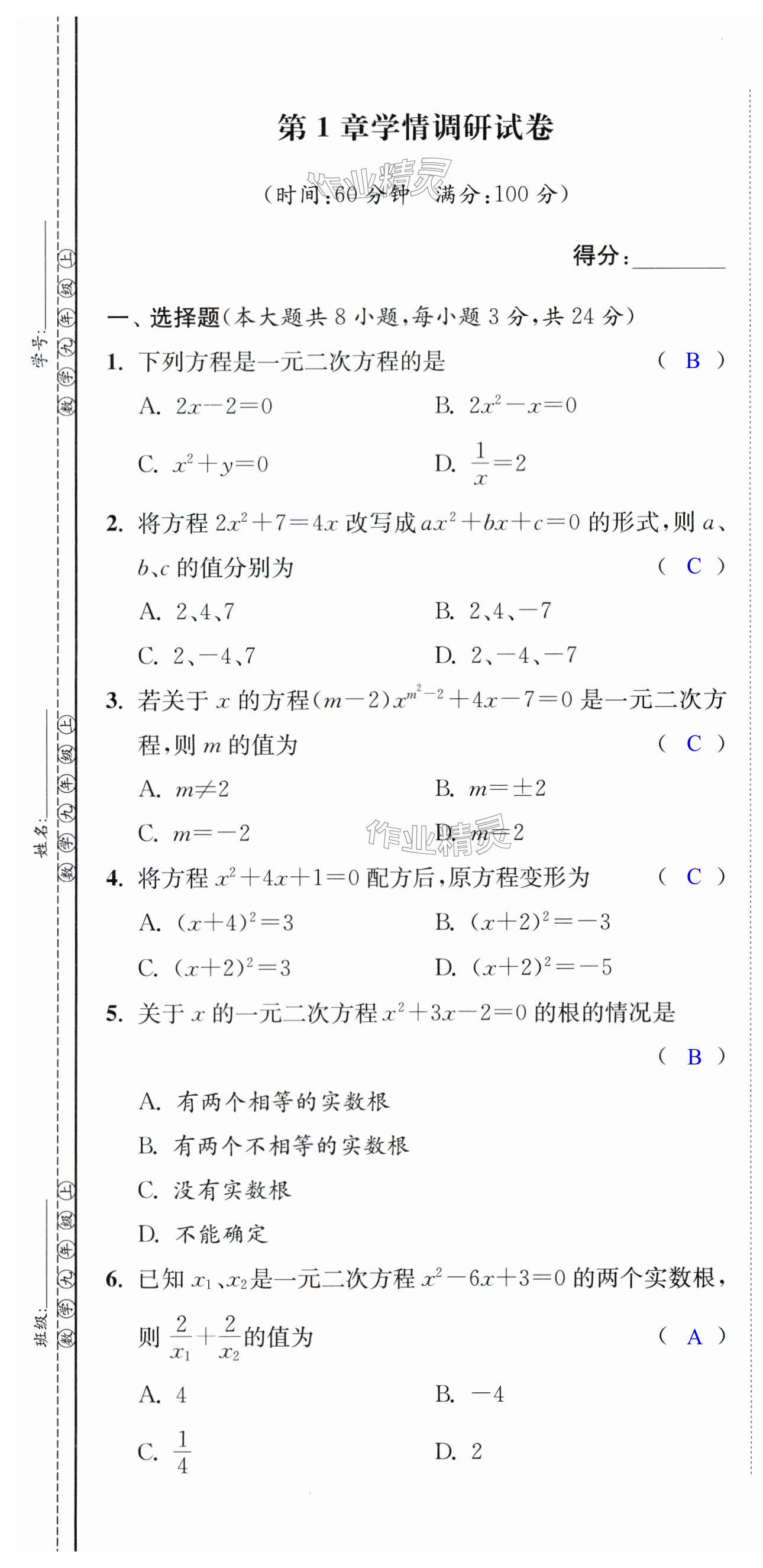 注:目前有些书本章节名称可能整理的还不是很完善,但都是按照顺序排列的,请同学们按照顺序仔细查找。练习册 2025年课时提优计划作业本九年级数学上册苏科版基础强化版 答案主要是用来给同学们做完题方便对答案用的,请勿直接抄袭。
