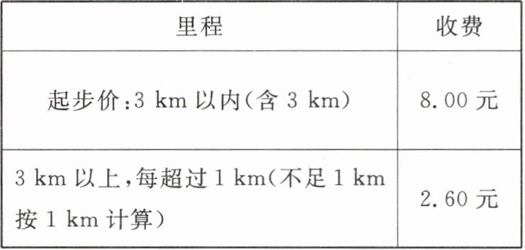 前$3km$收费$8$元,超过$3km$的部分为$8 - 3 = 5km$,这部分费用为$5×2.6 = 13$元。