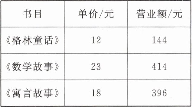《寓言故事》销售量:$396÷18 = 22$(本)