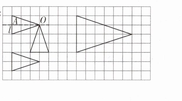 (1)以直线 $l$ 为对称轴,画出图形 $A$ 的另一半,使它成为一个轴对称图形。