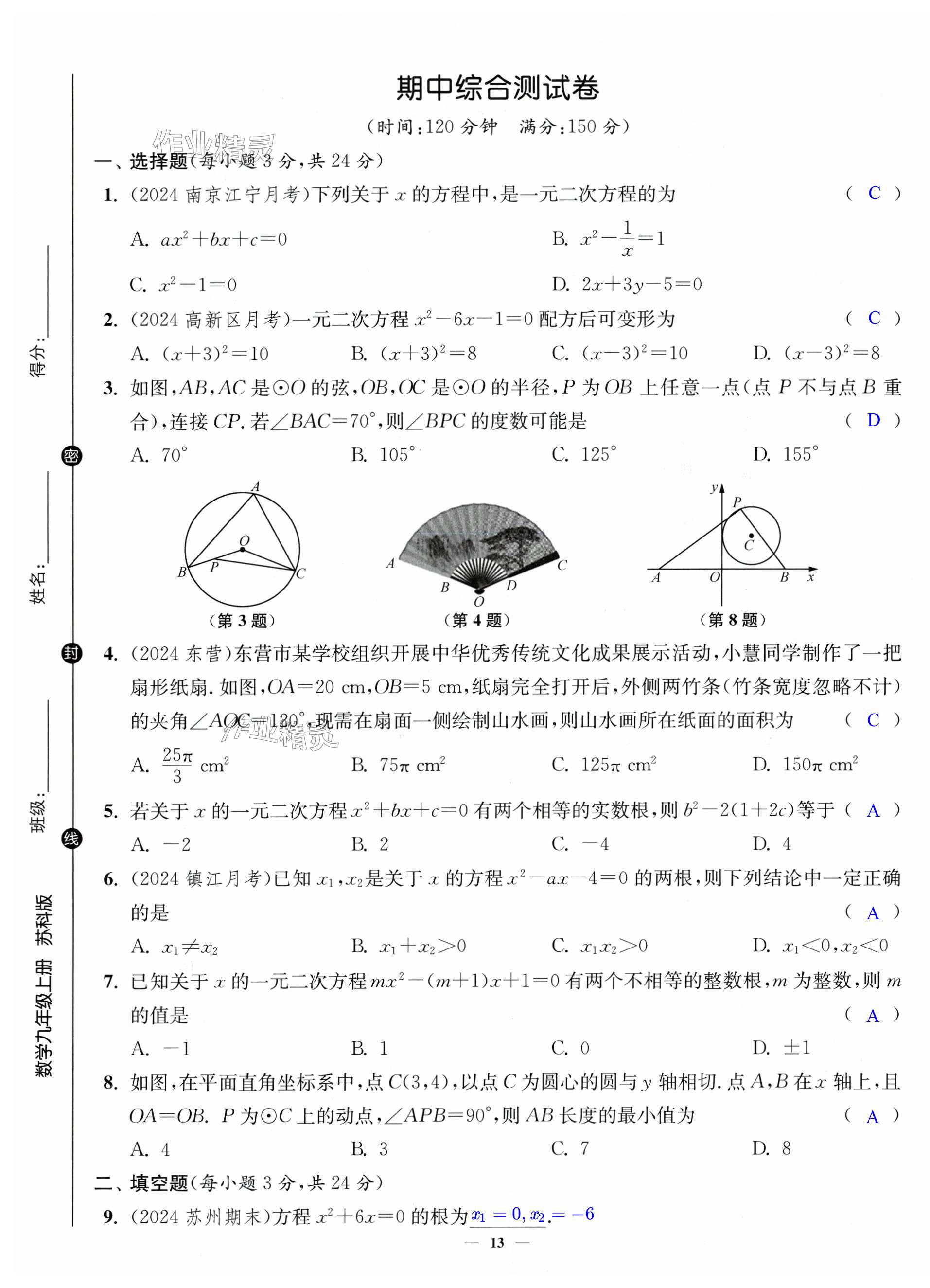 注:目前有些书本章节名称可能整理的还不是很完善,但都是按照顺序排列的,请同学们按照顺序仔细查找。练习册 2025年南通小题课时作业本九年级数学上册苏科版 答案主要是用来给同学们做完题方便对答案用的,请勿直接抄袭。
