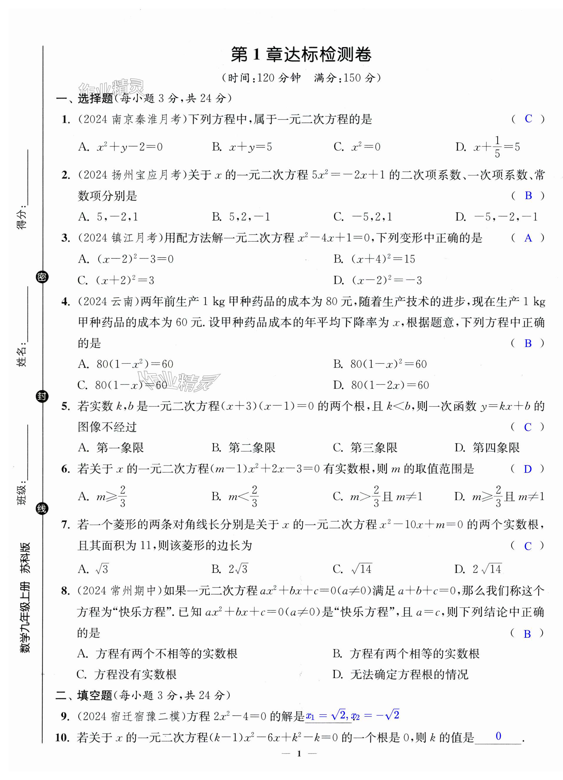 注:目前有些书本章节名称可能整理的还不是很完善,但都是按照顺序排列的,请同学们按照顺序仔细查找。练习册 2025年南通小题课时作业本九年级数学上册苏科版 答案主要是用来给同学们做完题方便对答案用的,请勿直接抄袭。