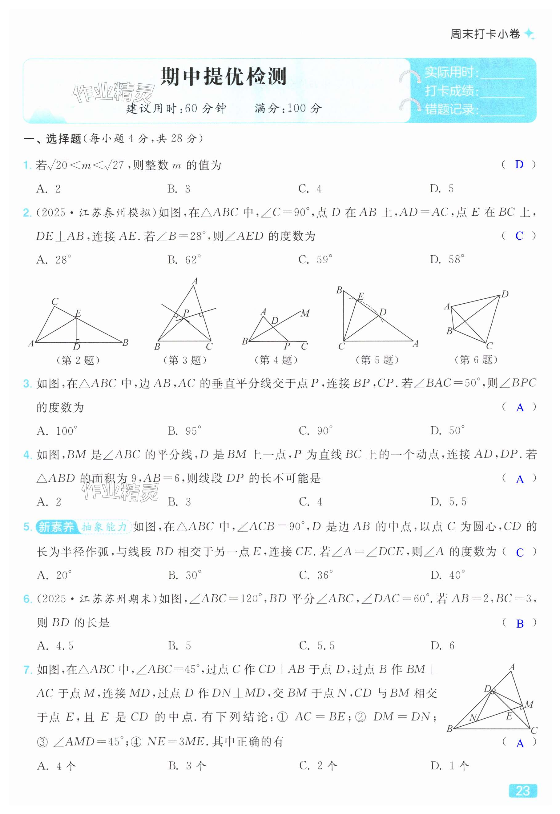 注:目前有些书本章节名称可能整理的还不是很完善,但都是按照顺序排列的,请同学们按照顺序仔细查找。练习册 2025年亮点给力提优课时作业本八年级数学上册苏科版 答案主要是用来给同学们做完题方便对答案用的,请勿直接抄袭。