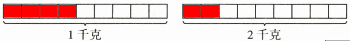 1. 在下面两幅图中分别用阴影表示出$\frac {4}{9}$千克。
