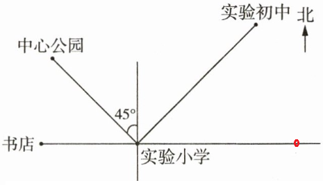 (2) 中心公园在实验小学的( )偏( )( )$^{\circ}$方向约( )米处。