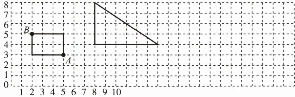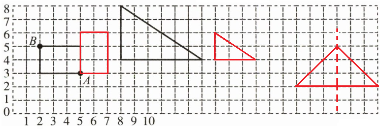 (1) 把图中的长方形绕点A顺时针旋转$90^{\circ}$,画出旋转后的图形。旋转后点B的位置用数对表示是( , )。