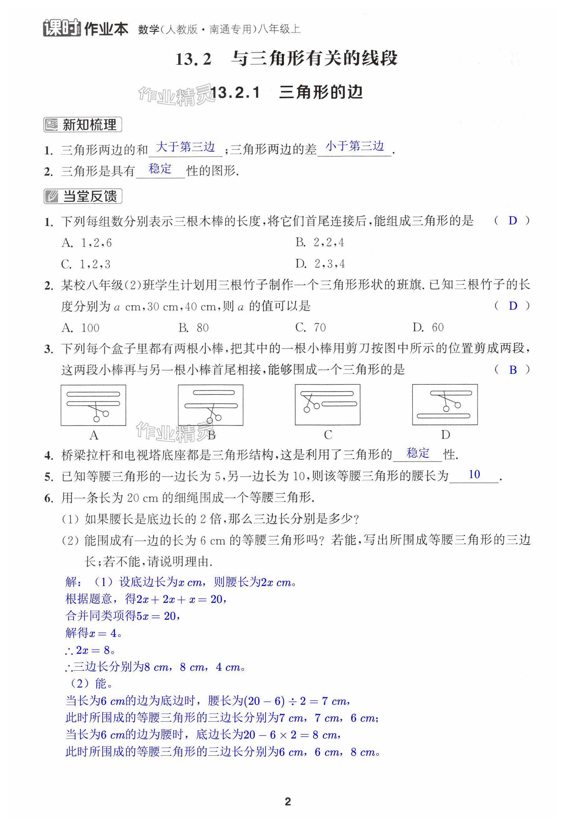 注:目前有些书本章节名称可能整理的还不是很完善,但都是按照顺序排列的,请同学们按照顺序仔细查找。练习册 2025年通城学典课时作业本八年级数学上册人教版南通专版 答案主要是用来给同学们做完题方便对答案用的,请勿直接抄袭。