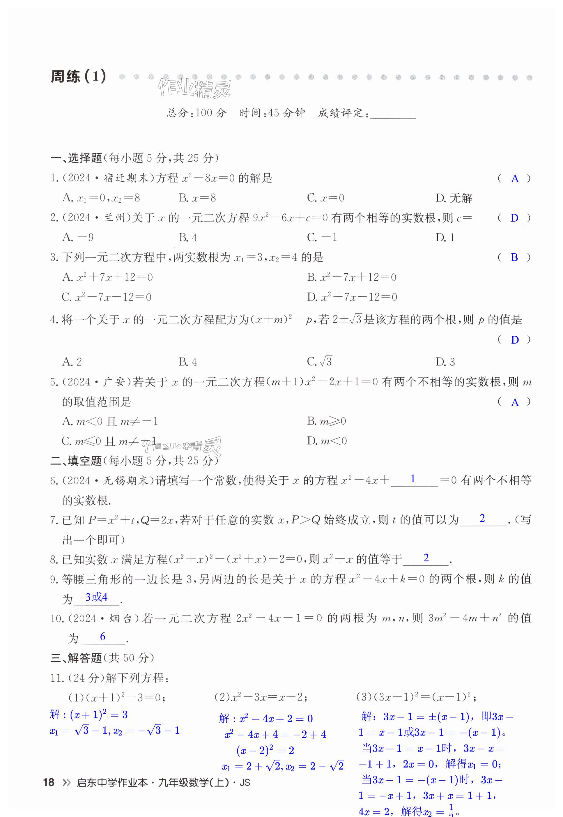 注:目前有些书本章节名称可能整理的还不是很完善,但都是按照顺序排列的,请同学们按照顺序仔细查找。练习册 2025年启东中学作业本九年级数学上册苏科版扬州专版 答案主要是用来给同学们做完题方便对答案用的,请勿直接抄袭。