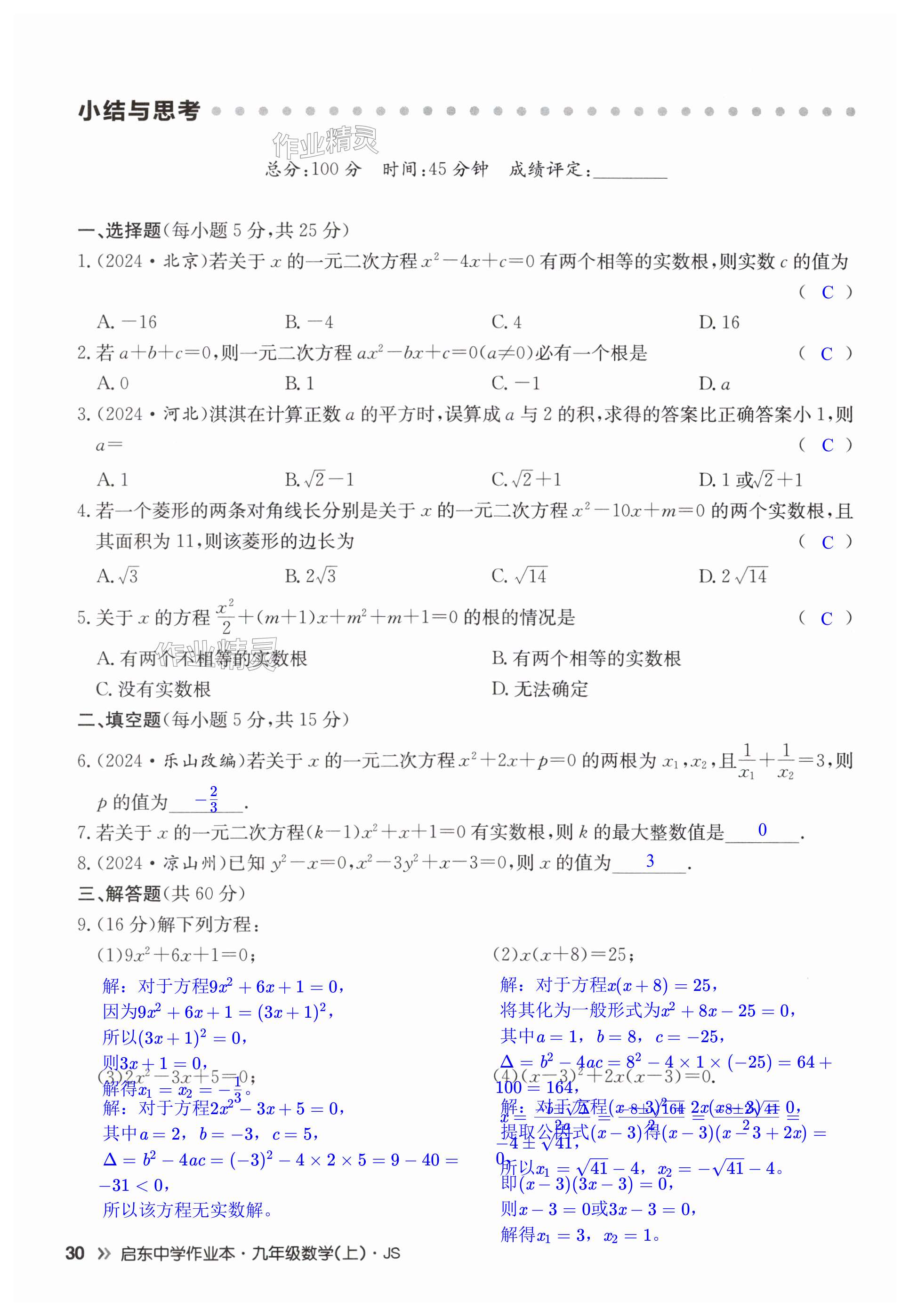注:目前有些书本章节名称可能整理的还不是很完善,但都是按照顺序排列的,请同学们按照顺序仔细查找。练习册 2025年启东中学作业本九年级数学上册苏科版扬州专版 答案主要是用来给同学们做完题方便对答案用的,请勿直接抄袭。