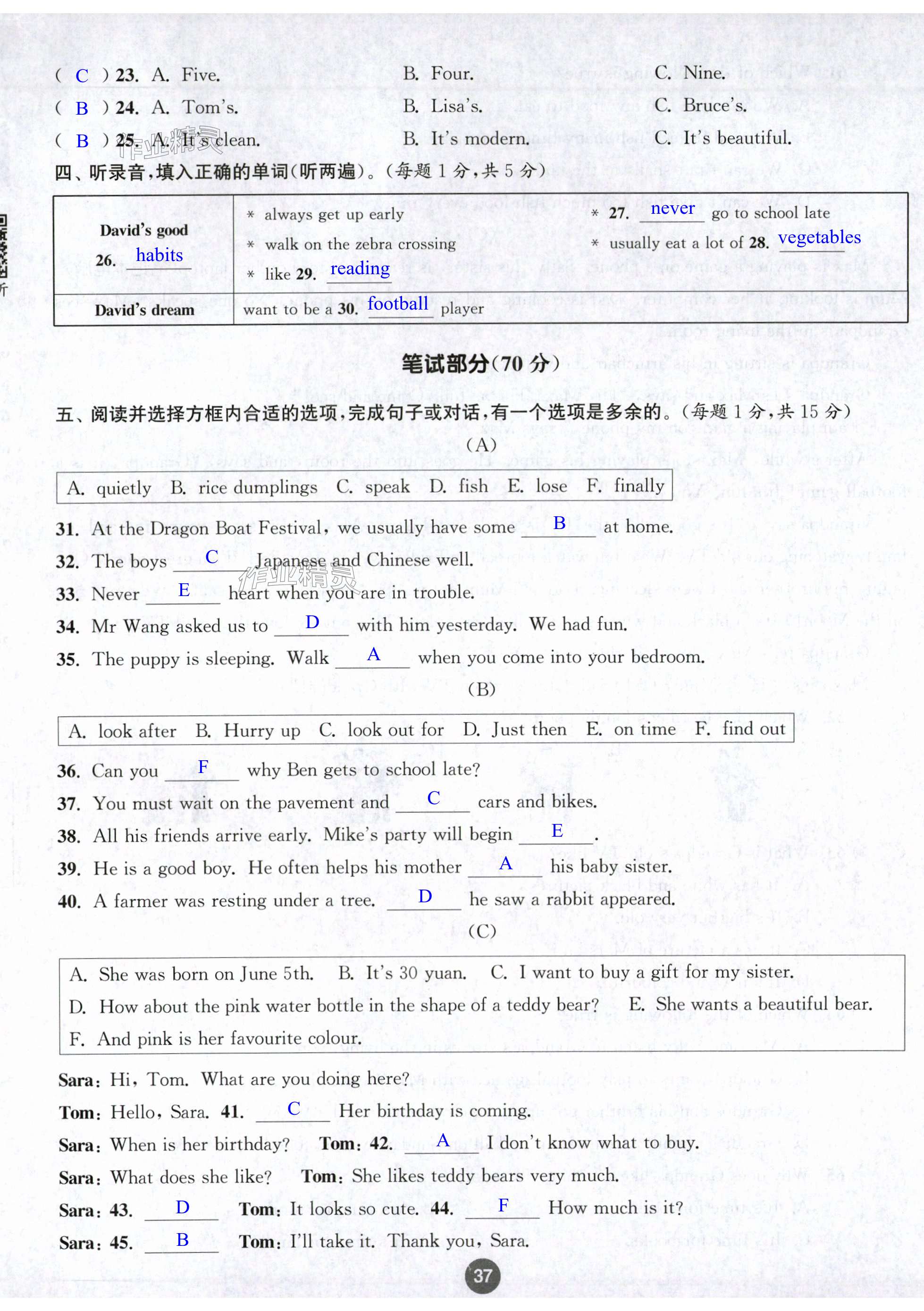 注:目前有些书本章节名称可能整理的还不是很完善,但都是按照顺序排列的,请同学们按照顺序仔细查找。练习册 2025年小学毕业考试试卷精编英语徐州专版 答案主要是用来给同学们做完题方便对答案用的,请勿直接抄袭。