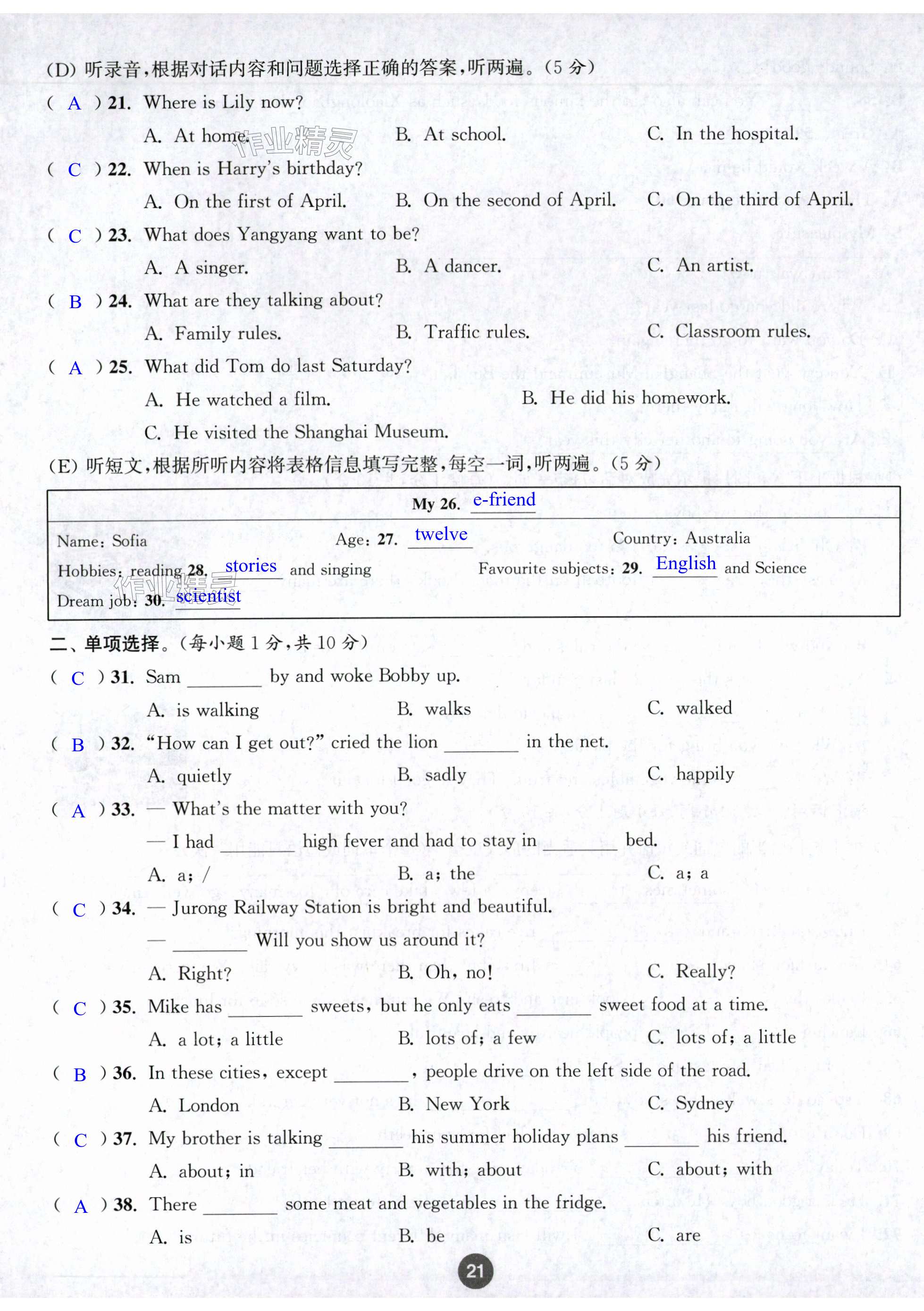 注:目前有些书本章节名称可能整理的还不是很完善,但都是按照顺序排列的,请同学们按照顺序仔细查找。练习册 2025年小学毕业考试试卷精编英语徐州专版 答案主要是用来给同学们做完题方便对答案用的,请勿直接抄袭。