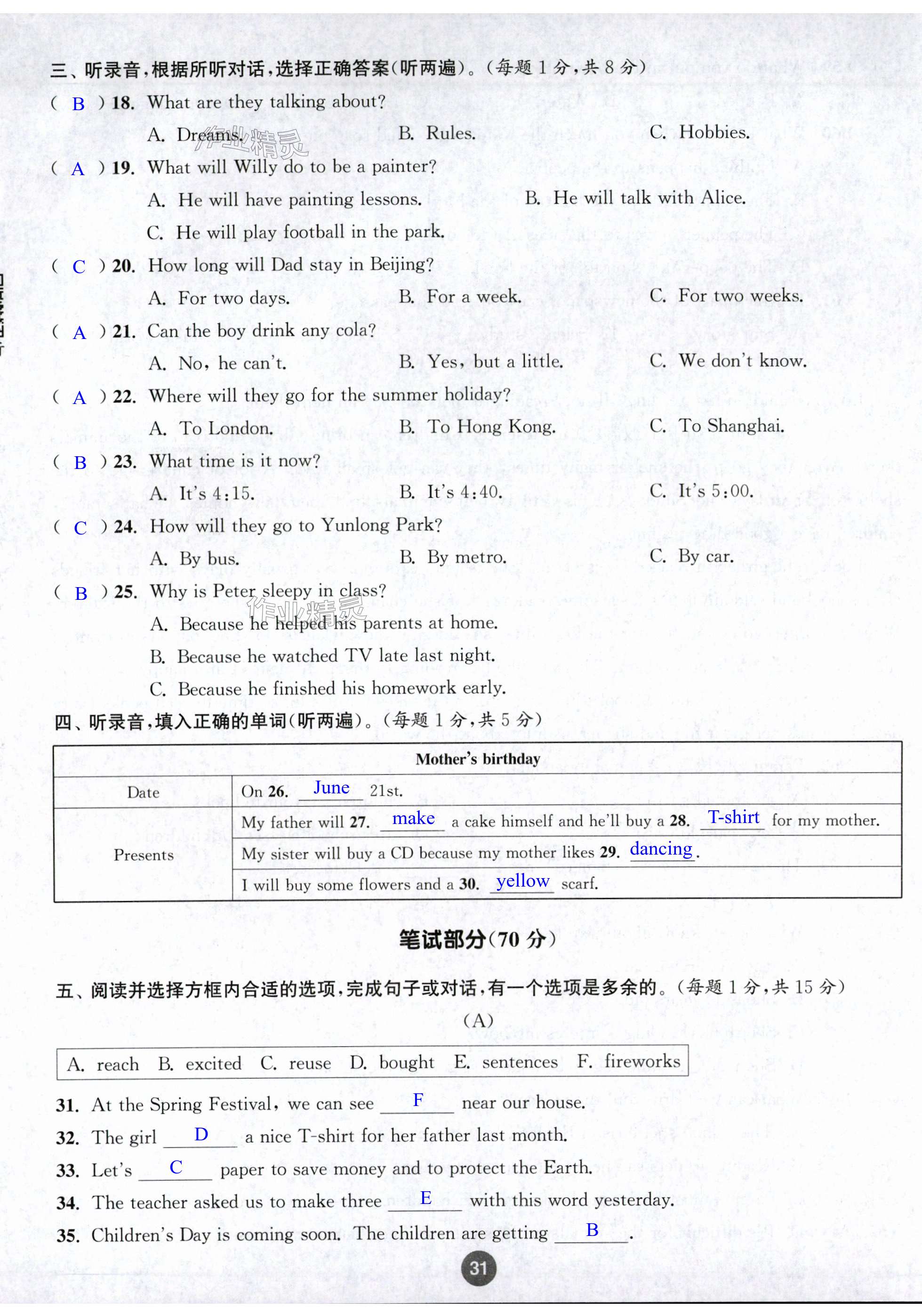 注:目前有些书本章节名称可能整理的还不是很完善,但都是按照顺序排列的,请同学们按照顺序仔细查找。练习册 2025年小学毕业考试试卷精编英语徐州专版 答案主要是用来给同学们做完题方便对答案用的,请勿直接抄袭。