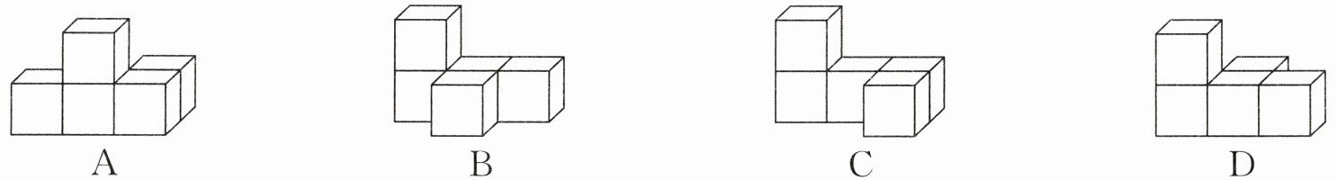 16. 用 5 个同样大小的正方体搭成一个立体图形,从前面看到的是