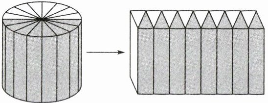 13. 如左下图,把底面周长是 37.68 厘米、高是 10 厘米的圆柱切成若干等份,拼成一个近似的长方体。这个长方体的表面积是(