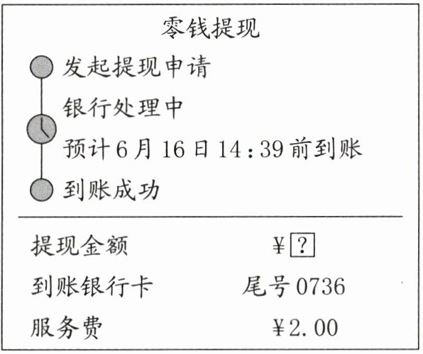 13. 如图是小诚爸爸的提现截图,按照规定,从账户提现需要缴纳 0.1%的服务费,他的提现金额是(