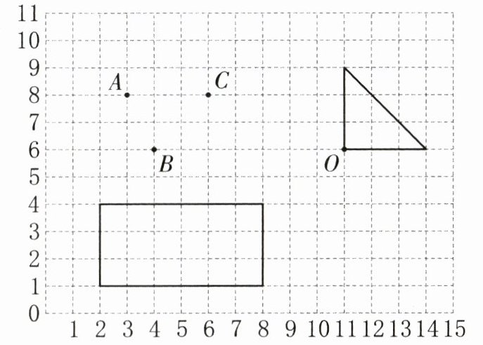 点$A$的位置是$(2, 8)$,点$B$的位置是$(4, 6)$,点$C$的位置是$(6, 8)$。