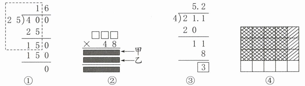 B选项:从图中可知乙表示的数是$4$个方格,甲表示的数是$3$个相同方格组,即$3×48 = 144$,$144÷48 = 3$,甲表示的数是乙的$3$倍,并非$2$倍,所以B选项错误。