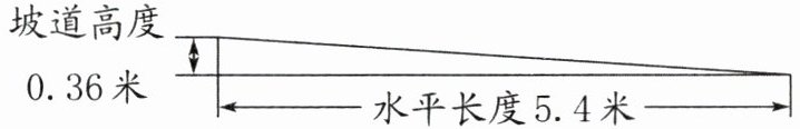 已知坡道高度为$0.36$米,水平长度为$5.4$米,