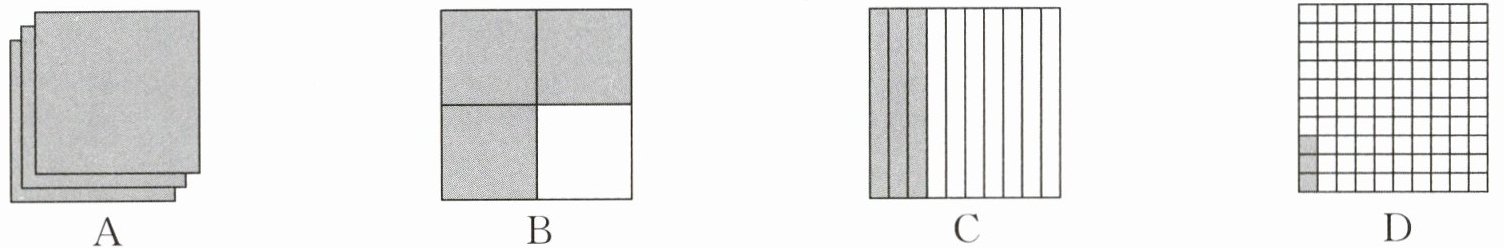 选项C:图中的正方形被平均分成10份,阴影部分占3份,表示0.3,符合题意。