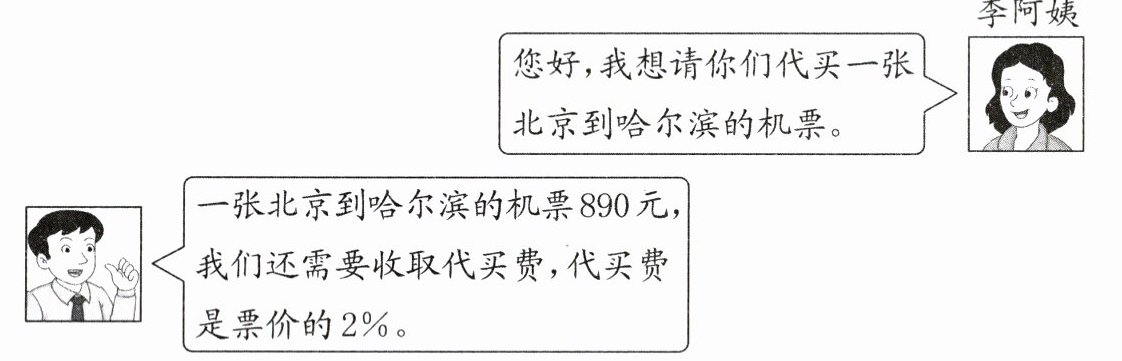 9. 下面是李阿姨的聊天截图,根据对话可以看出,李阿姨请人代买一张北京到哈尔滨的机票,一共要付(