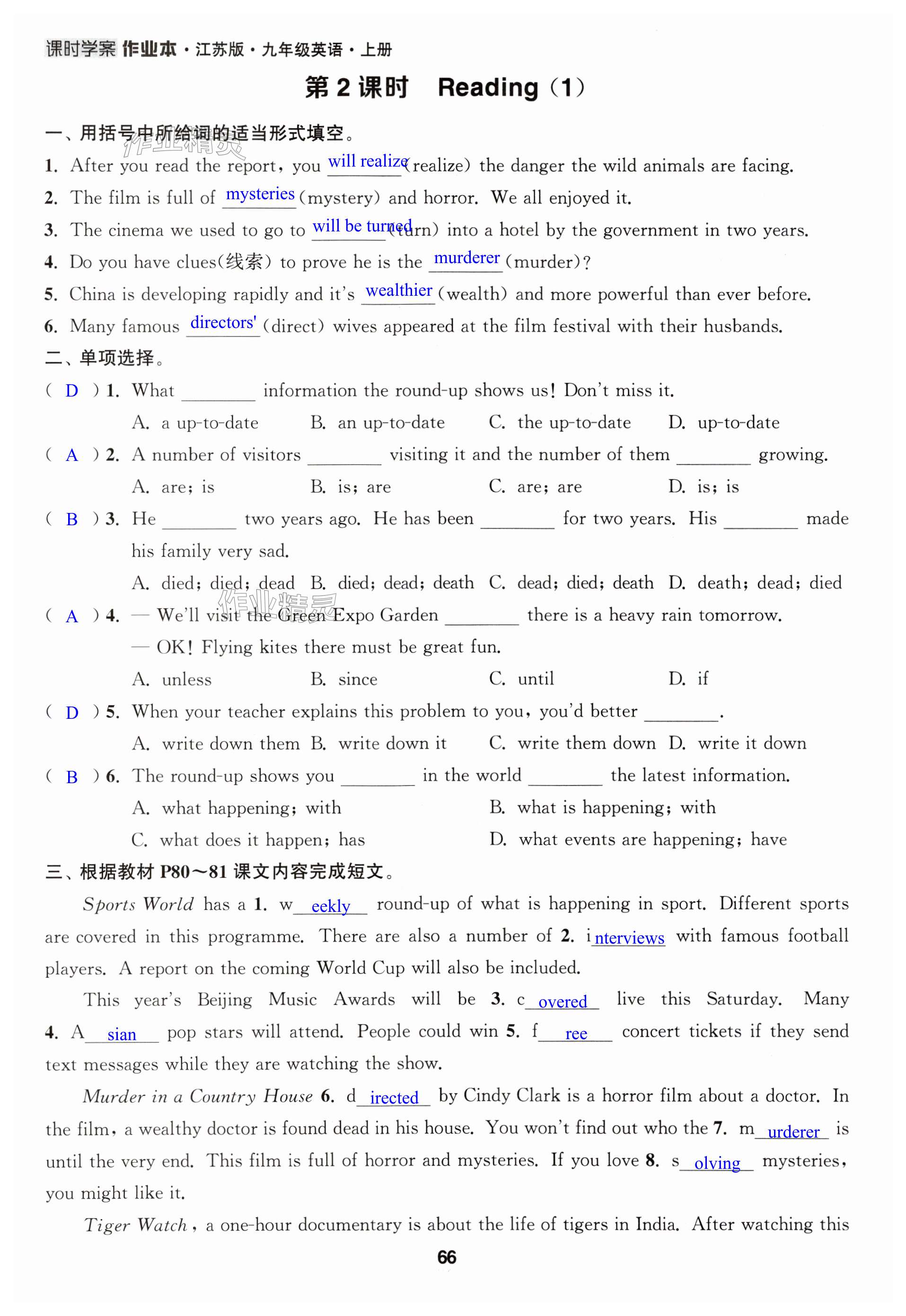 注:目前有些书本章节名称可能整理的还不是很完善,但都是按照顺序排列的,请同学们按照顺序仔细查找。练习册 2025年金钥匙课时学案作业本九年级英语上册译林版 答案主要是用来给同学们做完题方便对答案用的,请勿直接抄袭。