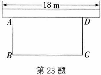 23. (12分)为响应“创建全国文明城市”号召,某单位不断美化环境,拟在一块矩形空地上修建绿色植物园,其中一边靠墙,可利用的墙长不超过$18m$,另外三边由$36m$长的栅栏围成. 设在矩形空地$ABCD$中,垂直于墙的边$AB= xm$,面积为$y m^{2}$(如图).