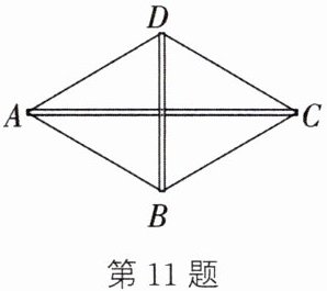 11. (易错题)如图,小华将一根长为 10 cm 的小棒截成两段,并将之放置在互相垂直平分的位置上,将端点用橡皮筋连接,构造出菱形 ABCD.