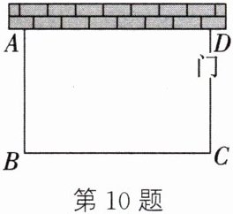 10. (新情境·日常生活)某驻村工作队决定在该村山脚下围一块面积为$600m^{2}$的矩形茶园.如图,茶园 ABCD 一边靠墙,墙长 35 m,另外三边用 69 m 长的篱笆围成,其中边 CD 上开有一扇 1 m 宽的门,求这个茶园的长和宽.
