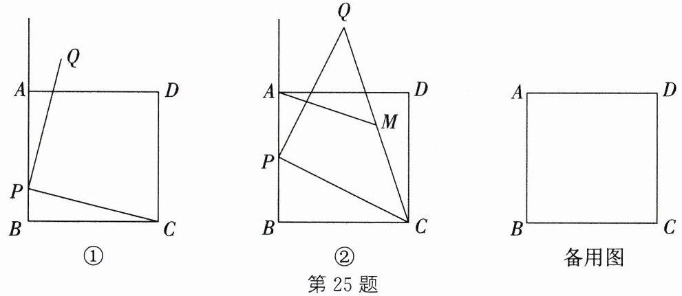 (2) 如图②,连接$CQ$,取$CQ的中点M$,连接$AM$.求证:$AM= \frac{1}{2}CQ$.