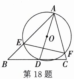 18. 如图,在$\triangle ABC$中,$∠B= 45^{\circ },∠ACB= 75^{\circ },AB= 4$,D是边BC上的一个动点,以AD为直径画$\odot O$,分别交AB,AC于点E,F,连接EF,则EF长的最小值为______.