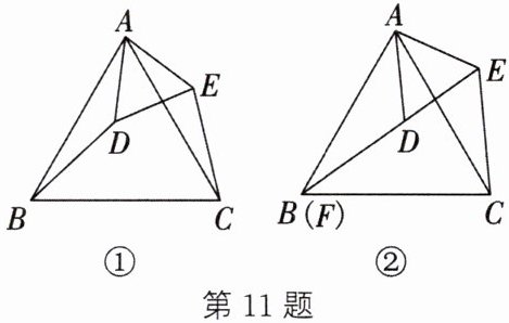 11. 如图①,$\triangle ABC$是等边三角形,点D在$\triangle ABC$的内部,连接AD,将线段AD绕点A逆时针旋转$60^{\circ }$,得到线段AE,连接BD,DE,CE.