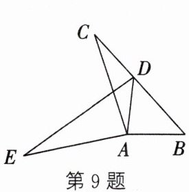 9. (2023·海安期末)如图,在$\triangle ABC$中,$∠BAC= 108^{\circ }$,将$\triangle ABC$绕点A逆时针旋转得到$\triangle ADE$.若点D恰好落在边BC上,且$AD= CD$,则$∠E$的度数是____