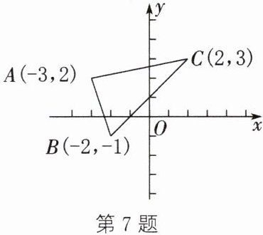7. (教材 P68 例 2 变式)如图,$ \triangle ABC $ 三个顶点的坐标分别为 $ A(-3,2),B(-2,-1),C(2,3) $,利用关于原点对称的点的坐标的特点,作出 $ \triangle ABC $ 关于原点对称的 $ \triangle A'B'C' $ (简要说明,其中点 $ A,B,C $ 的对应点分别为 $ A',B',C' $ ).