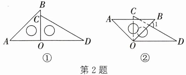 2. (2024·滨州)将一副三角尺按如图①所示的方式摆放,把三角尺 AOB 绕公共顶点 O 顺时针旋转至如图②所示的位置$(AB// OD)$,则$∠1$的度数为____.
