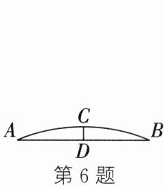 6. (新考向·数学文化)(2024·海安期中)“圆材埋壁”是我国古代数学著作《九章算术》中的一个问题:“今有圆材,埋在壁中,不知大小.以锯锯之,深一寸,锯道长一尺,问径几何?”其大意如下:如图,现有圆柱形木材埋在墙壁里,不知道木材的大小,用锯子去锯该木材,测得深度$CD为1$寸,锯道$AB的长为1$尺($1尺 = 10$寸),则该木材的半径为______寸.