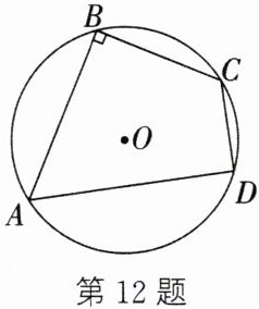 12. 如图,四边形 $ABCD$ 是 $\odot O$ 的内接四边形,$\angle B = 90^{\circ},\angle BCD = 120^{\circ},AB = 2,CD = 1$,求 $AD$ 的长.