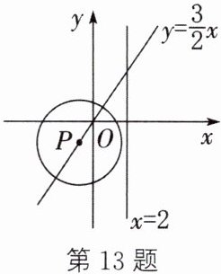 13. 如图,P为正比例函数$y= \frac {3}{2}x$的图象上一动点,$\odot P$的半径是2.5,设点P的坐标为$(x,y)$.